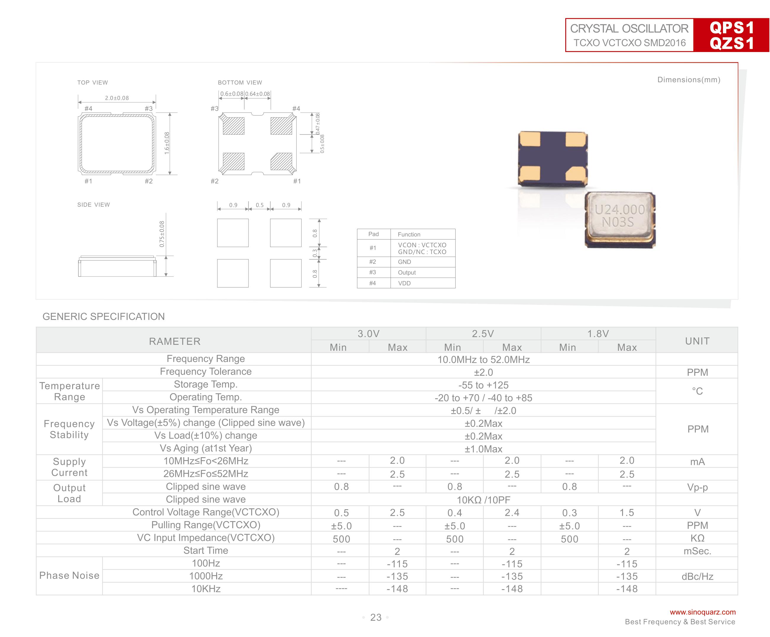 1. 温度特性:±0.5ppm~±2.0ppm;